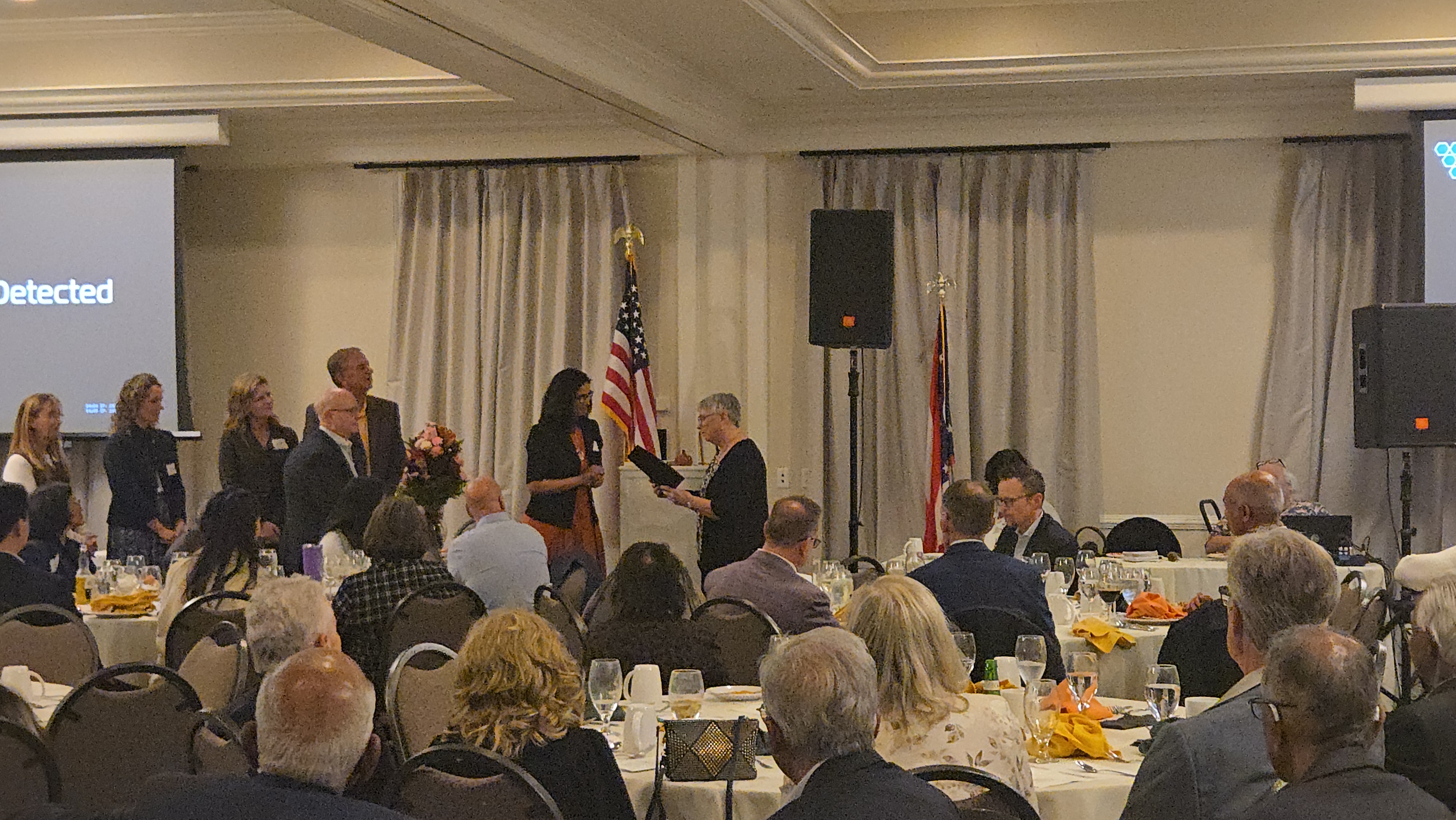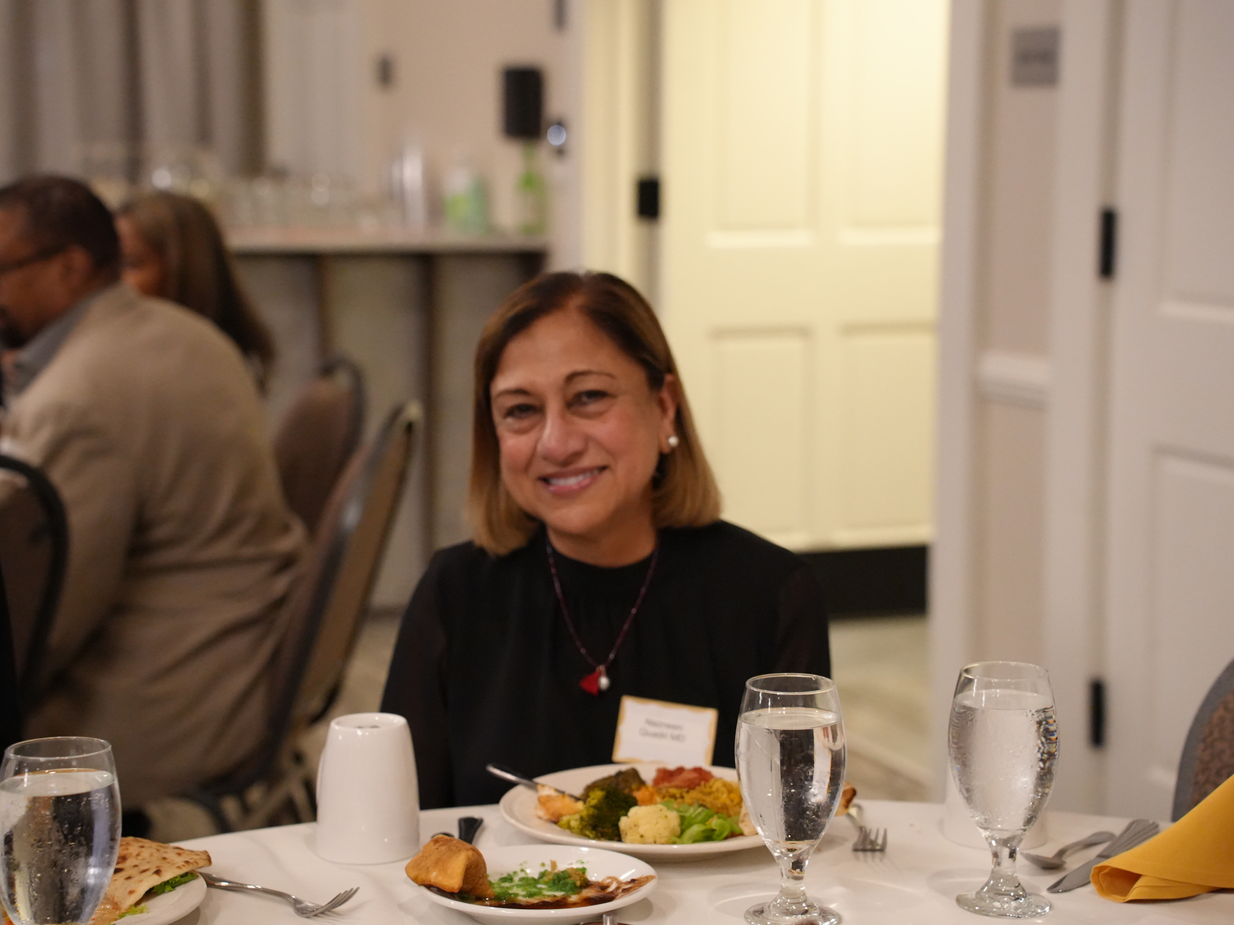 Following the CME sessions, guests enjoyed a delicious dinner catered by Amar India and the Golf Club at Yankee Trace. After dinner, Dr. Koduri made a special speech acknowledging Gerri Creel’s retirement and remarkable career defined by integrity, leadership, and an unwavering commitment to the advancement of the local medical community. Through more than four decades of dedicated work, Gerri exemplified professionalism and compassion, serving as a steady and inspiring presence within the Society. Her guidance has strengthened the foundation upon which MCMS stands today—an organization rooted in excellence, collaboration, and service to others.